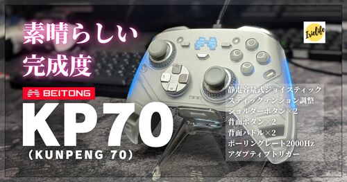 今回は、BEITONG「KP70(KUNPENG 70)」のレビューになります。 次々と新しいコントローラーが発売されています。進化が続く状況に喜びを感じつつも、無駄遣いしたくないのに買わなきゃいけないような脅迫心、触りたい試したいという溢れる好奇心、その両方…